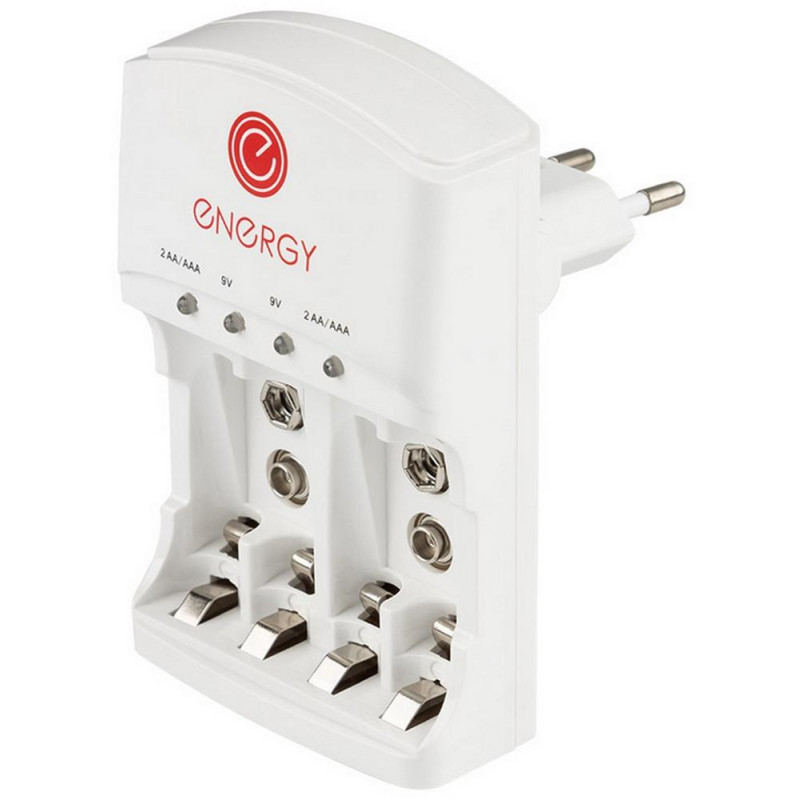 одновременная зарядка 2-х / 4-х аккумуляторов AA или AAA или 1-2 аккумулятора 9V, выход USB для подзарядки, складывающаяся вилка, индикация зарядки