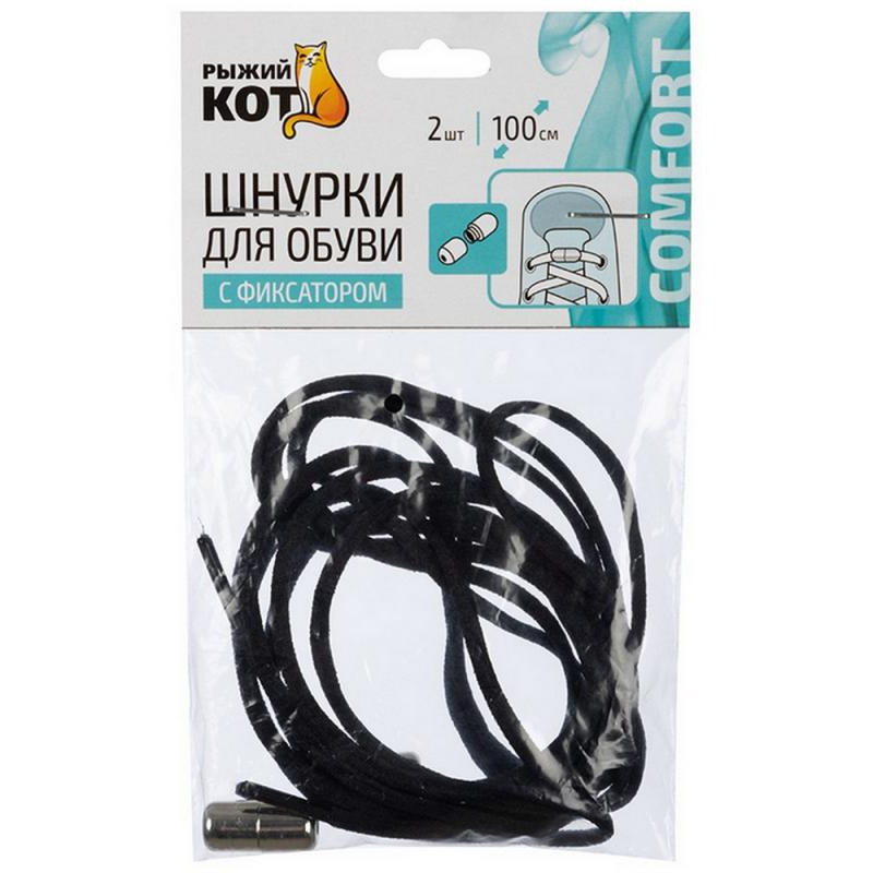 105165 Шнурки для обуви с фиксатором эластичные, черные