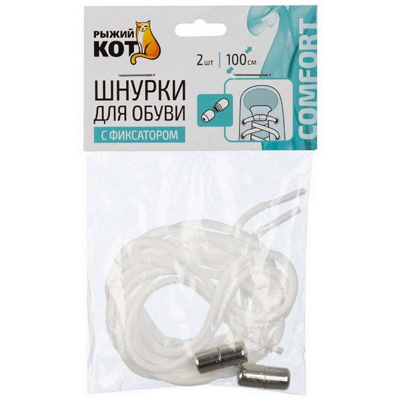105166 Шнурки для обуви с фиксатором эластичные, белые