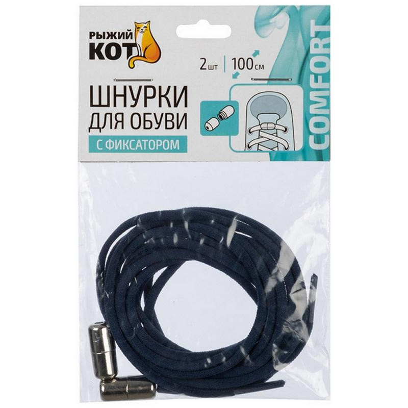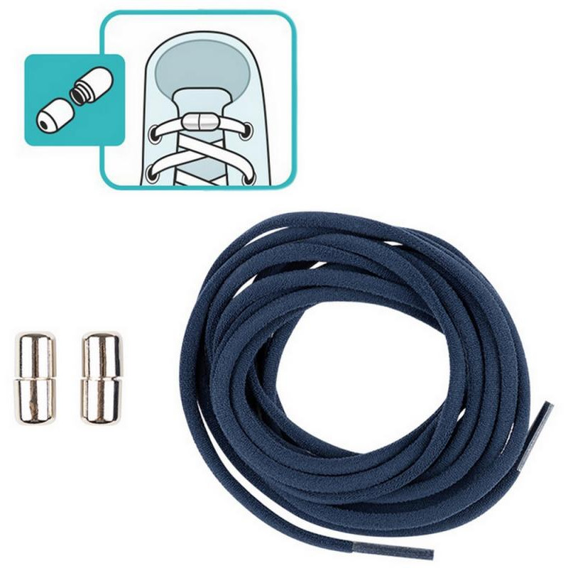 105167 Шнурки для обуви с фиксатором эластичные, темно-синие