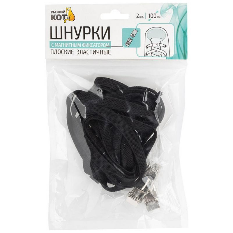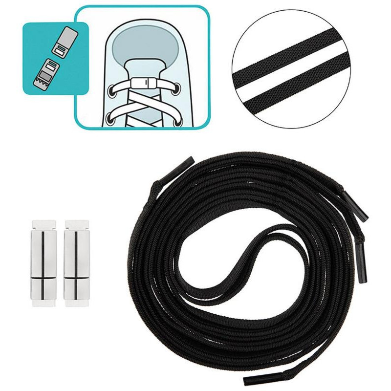 107988 Шнурки с магнитным фиксатором плоские эластичные, черные