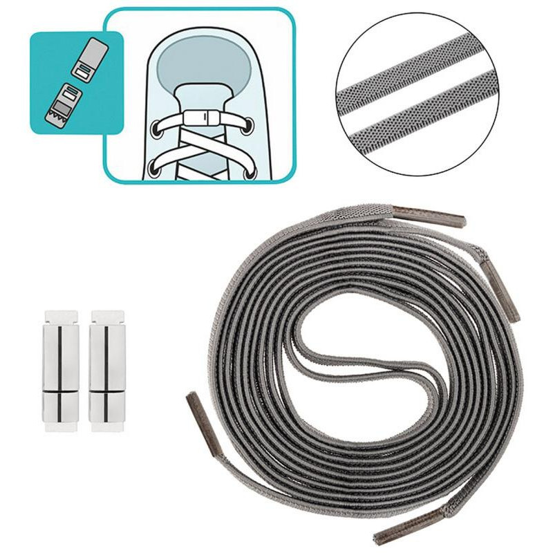 107990 Шнурки с магнитным фиксатором плоские эластичные, серые