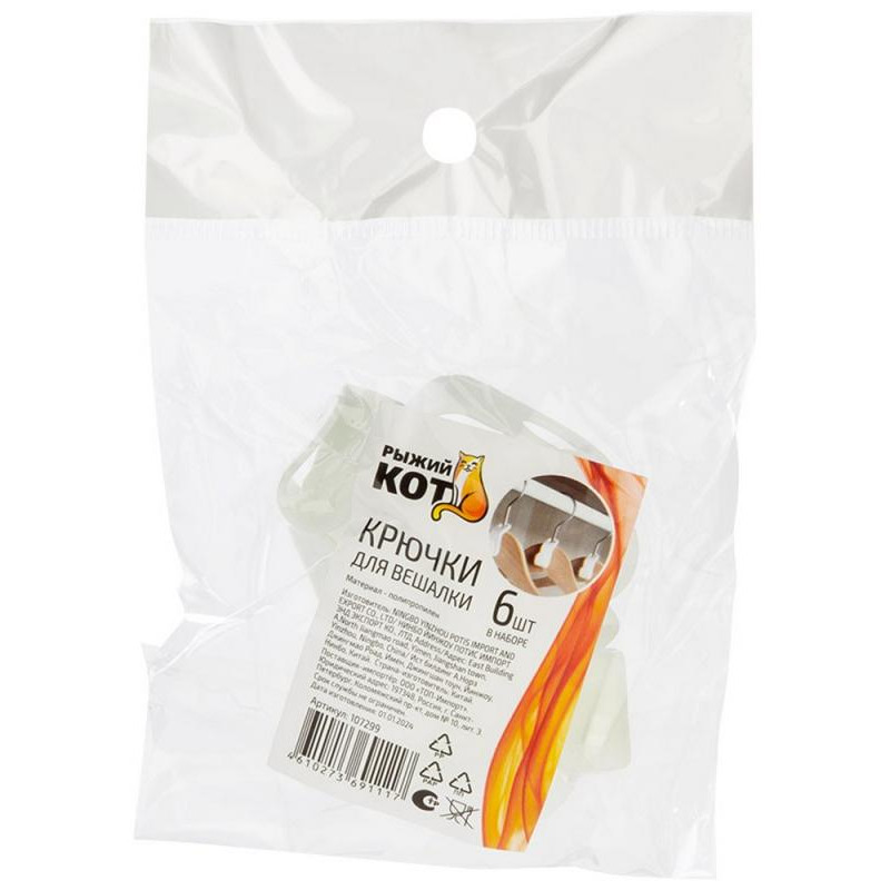 107299 Крючки для вешалки 'Рыжий кот' 6шт
