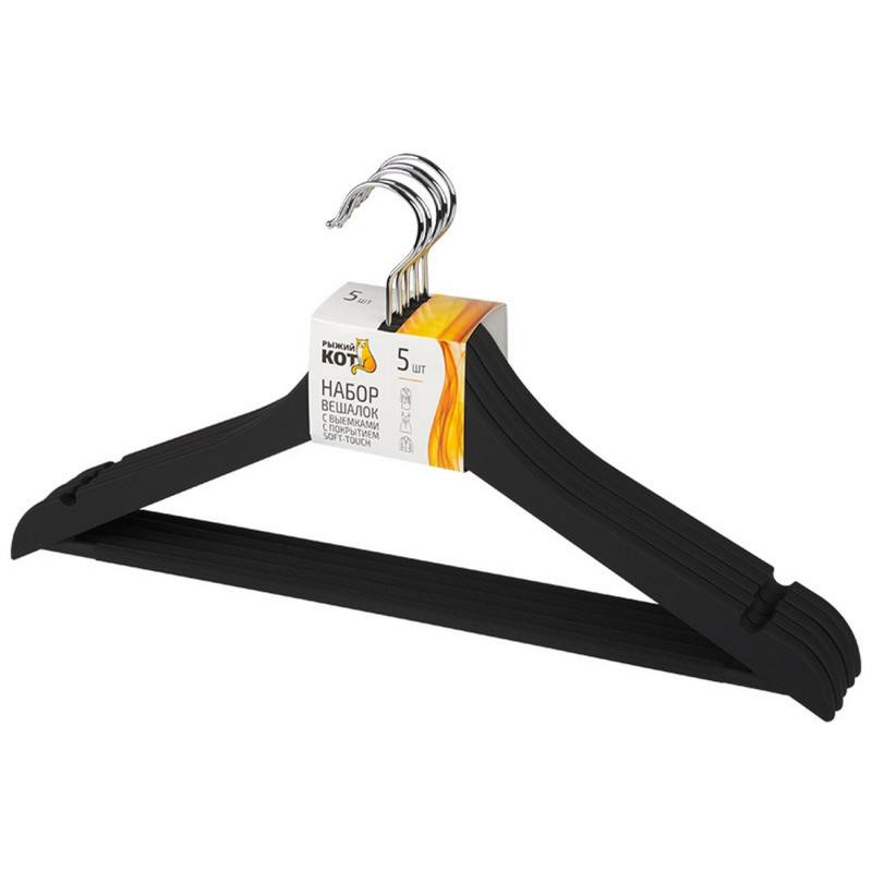 107883 Набор вешалок пластиковых c выемками с покрытием soft-touch 'Рыжий кот' (5шт) цвет черный