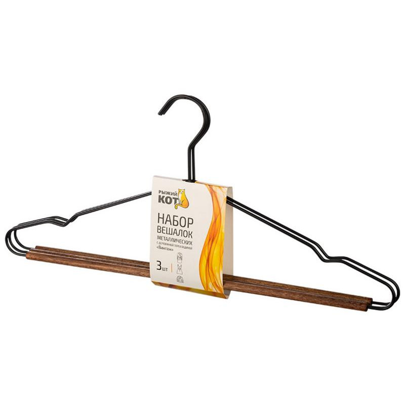 107891 Набор вешалок металлических с деревянной перекладиной 'Винтаж' 'ыжий кот' (3шт) цвет черный