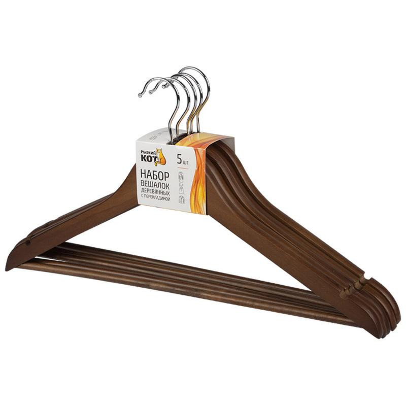107912 Набор вешалок деревянных с перекладиной ' Рыжий кот' (5шт) цвет темно-коричневый