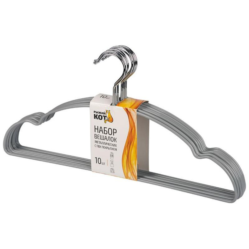 107916 Набор вешалок металлических с ПВХ покрытием 'Рыжий кот' (10шт) цвет серый