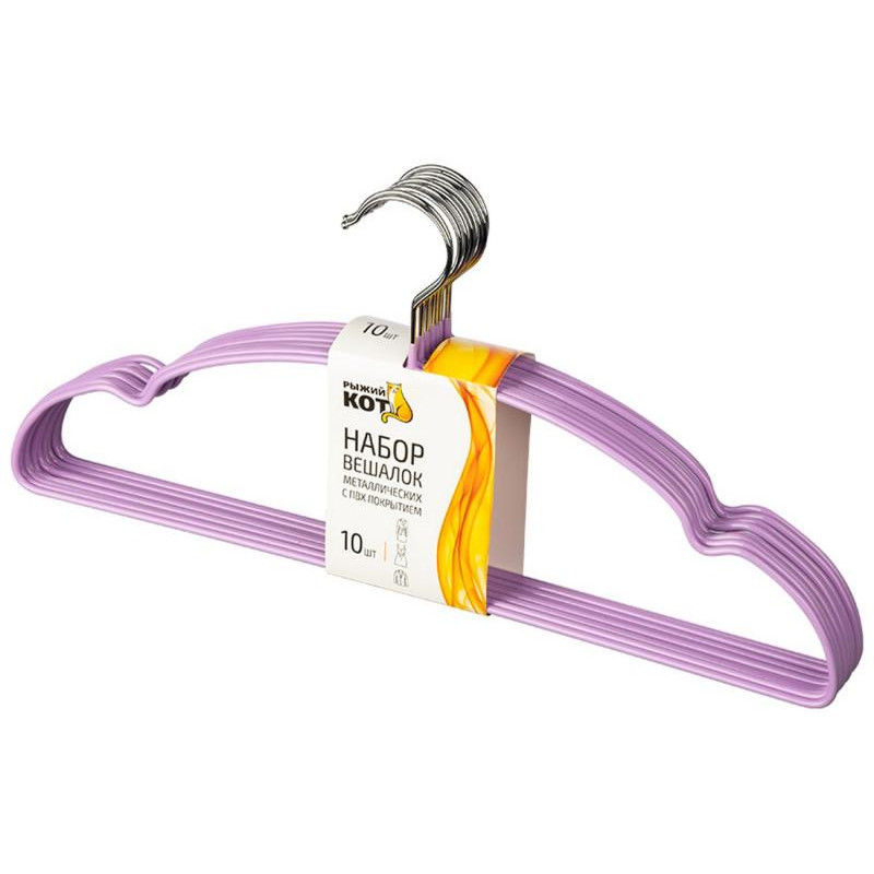 107917 Набор вешалок металлических с ПВХ покрытием 'Рыжий кот' (10шт) цвет сиреневый