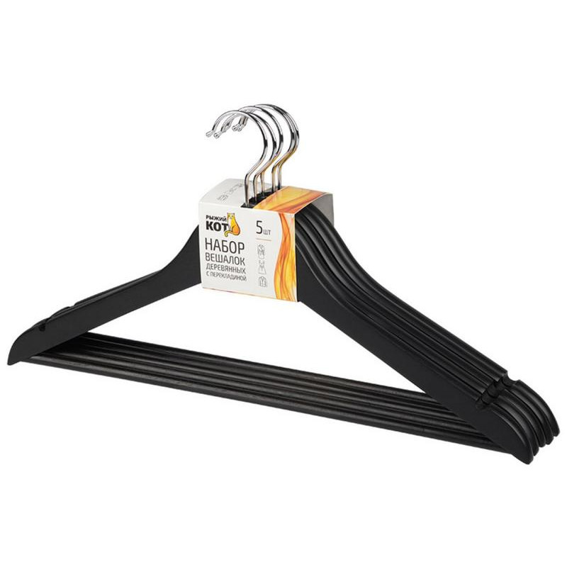 311381 Набор вешалок деревянных с перекладиной 'Рыжий кот' (5шт) цвет черный