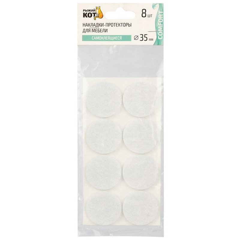 105207 Накладки-протекторы для мебели самоклеящиеся (8шт) 35мм белый ' Рыжий кот'