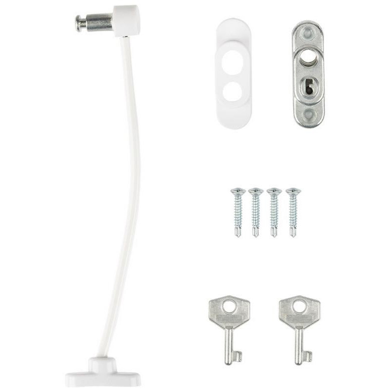 185мм общая длина троса, металл/пластик, саморезы в комплекте - 4шт, 2 ключа