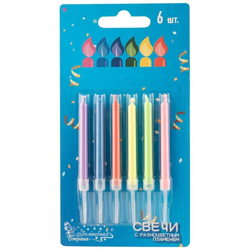 106827 Свечи с разноцветным пламенем 'Волшебная страна' микс цветов (6шт)