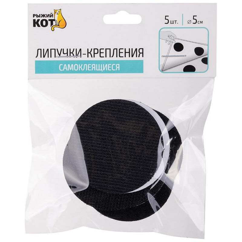 110048 Липучки-крепления самоклеящиеся круглые ' Рыжий Кот' , 5шт, черный
