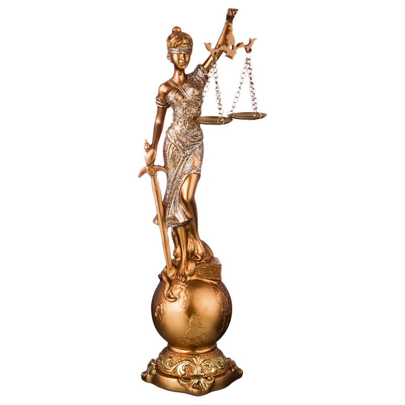 Серия МАХАРАДЖИ от торговой марки LEFARD объединяет под собой изящные предметы интерьера. Фигурка «Фемида» – одна из них. Богиня правосудия Фемида является покровительницей правопорядка. Считается, что она придает силы, храбрость тому, кто столкнулся с трудностями. Закрытые повязкой глаза символизируют равное отношение ко всем людям, к их особенностям. В руках богиня держит меч и весы. Острие меча, направленное вниз, символизирует победу, стремление к миру. Весы в левой руке являются символом меры, справедливого решения вопроса.