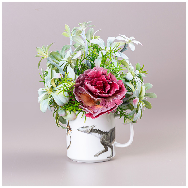 Цветочная композиция в кружке "ВОЛШЕБНЫЙ ДРАКОН " ширина 21 см*высота 23 см- без упаковки LEFARD 23-2434