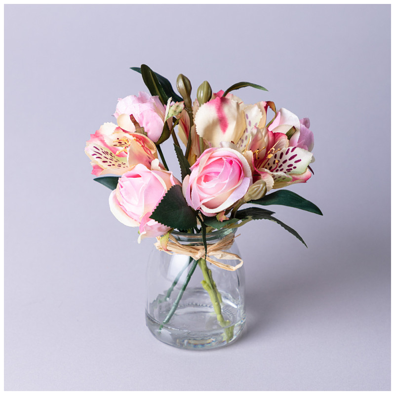 Букет искусственных цветов в круглой вазе высота= 16см (мал=8шт./кор=64шт.) LEFARD 287-546