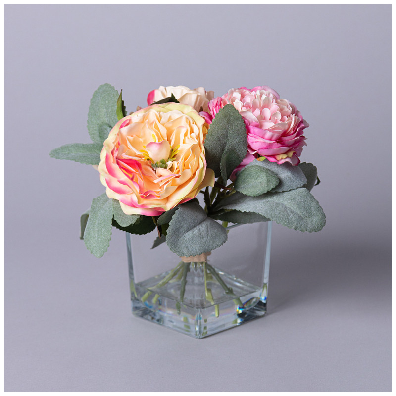 Букет искусственных цветов в квадратной вазе высота= 18см (мал=8шт./кор=24шт.) LEFARD 287-555
