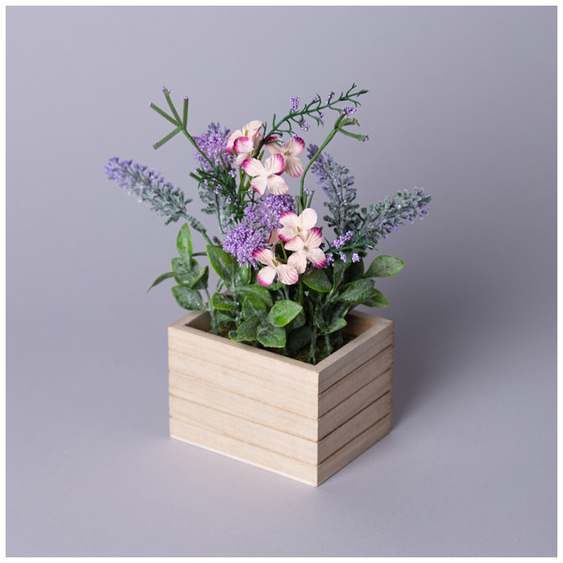 Цветочная композиция в деревянном кашпо высота=23см LEFARD 535-427
