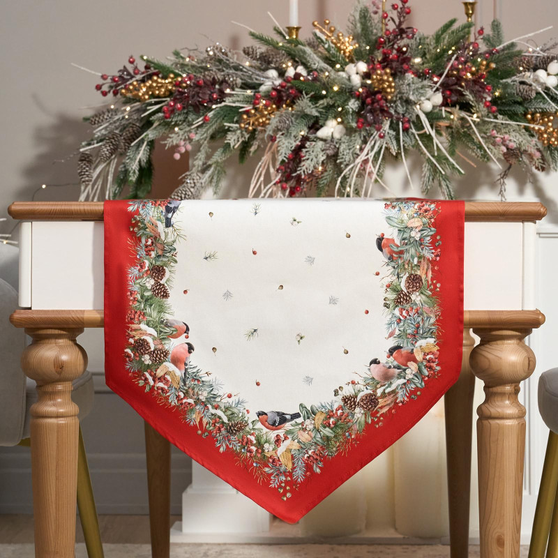 Новогодняя скатерть дорожка от Lefard из коллекции"Морозко Снегири" — эффектный элемент праздничного декора и практичное текстильное решение для сервировки больших столов. Идеально подойдёт для новогоднего застолья, рождественского ужина и уютного зимнего интерьера.