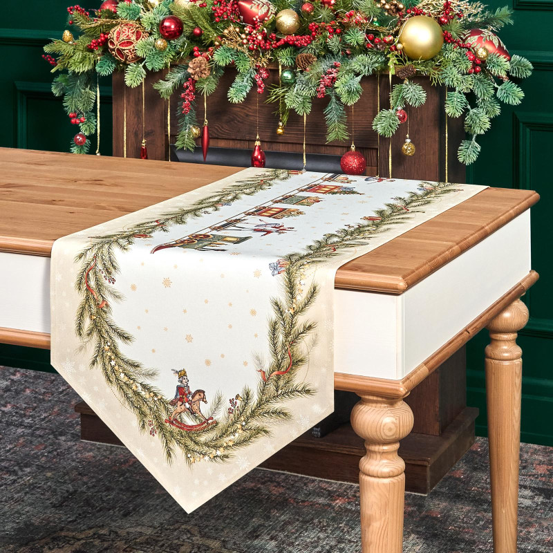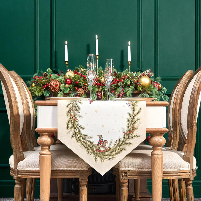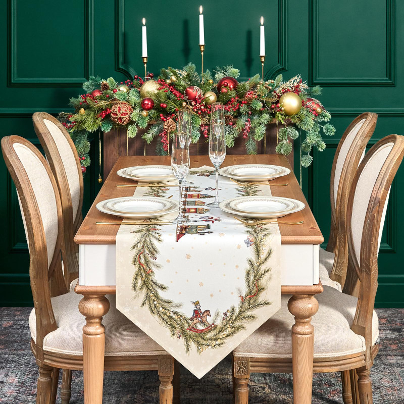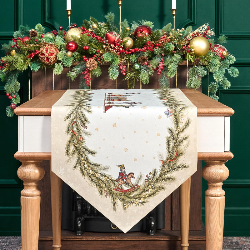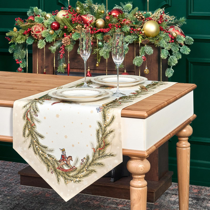 Новогодняя скатерть дорожка от Lefard из коллекции "Щелкунчик" — эффектный элемент праздничного декора и практичное текстильное решение для сервировки столов. Идеально подойдёт для Нового года, Рождества, зимних ужинов и семейных торжеств.