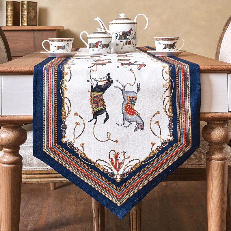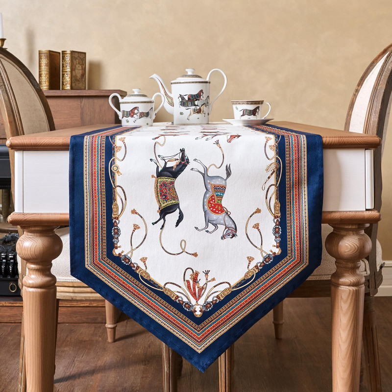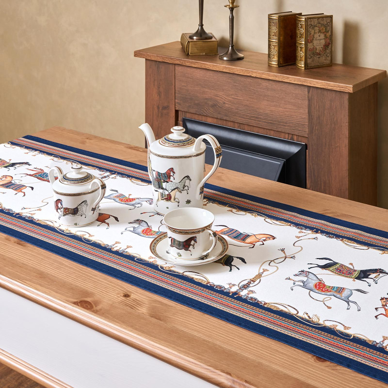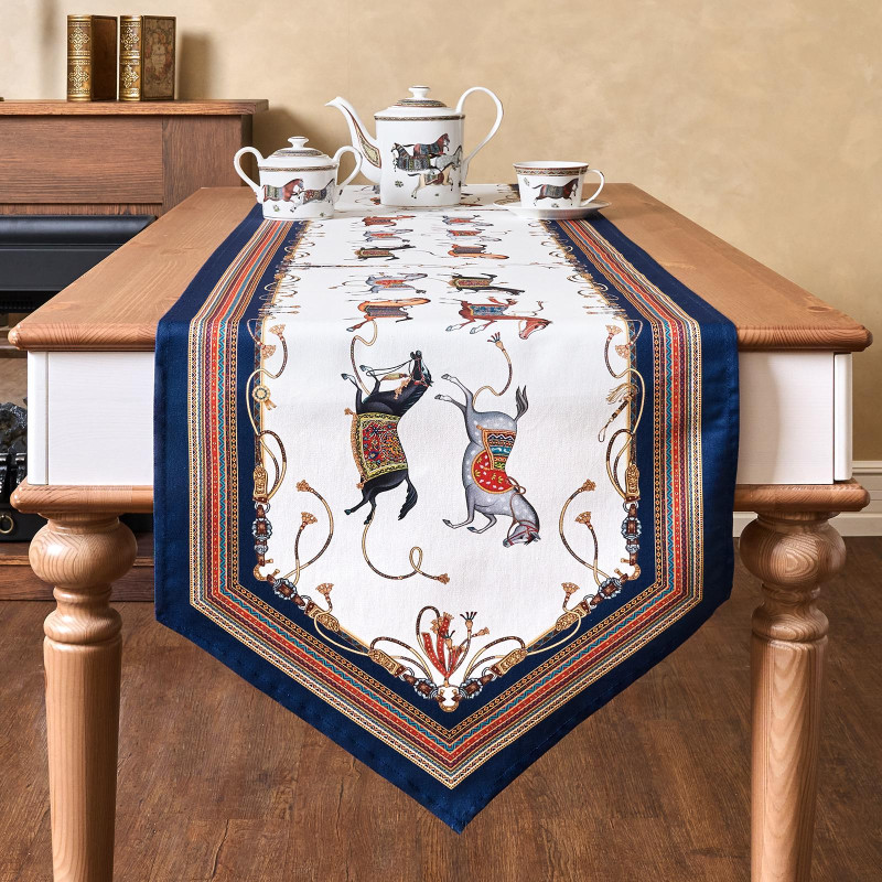 Хорошо комбинируется с однотонными скатертями. Подходит для дома, дачи, загородного коттеджа. Размер 45×215 см идеально подойдёт для прямоугольных и овальных столов, позволяя создать аккуратный и завершённый образ сервировки.