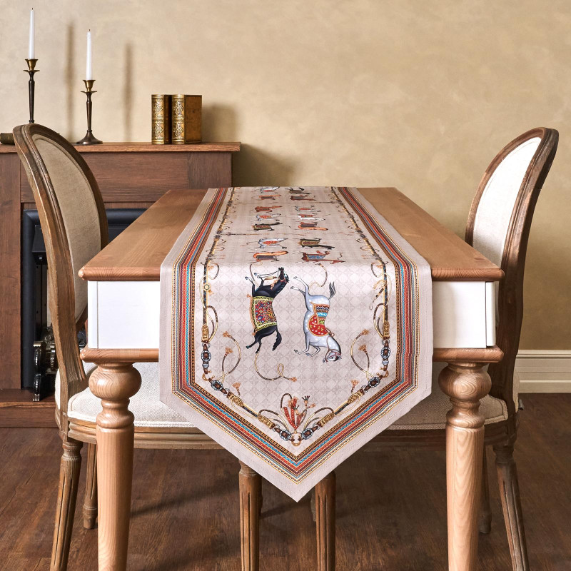 Хорошо комбинируется с однотонными скатертями. Подходит для дома, дачи, загородного коттеджа. Размер 45×215 см идеально подойдёт для прямоугольных и овальных столов, позволяя создать аккуратный и завершённый образ сервировки.