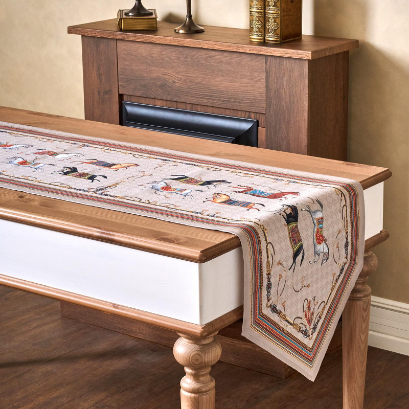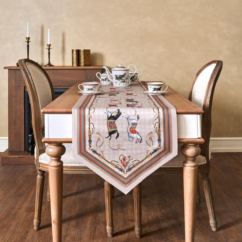Хорошо комбинируется с однотонными скатертями, посудой в классическом или прованском стиле, текстилем в зимней палитре. Подходит для дома, дачи, загородного коттеджа. Размер 45×300 см идеально подойдёт для прямоугольных и овальных столов, позволяя создать аккуратный и завершённый образ сервировки.