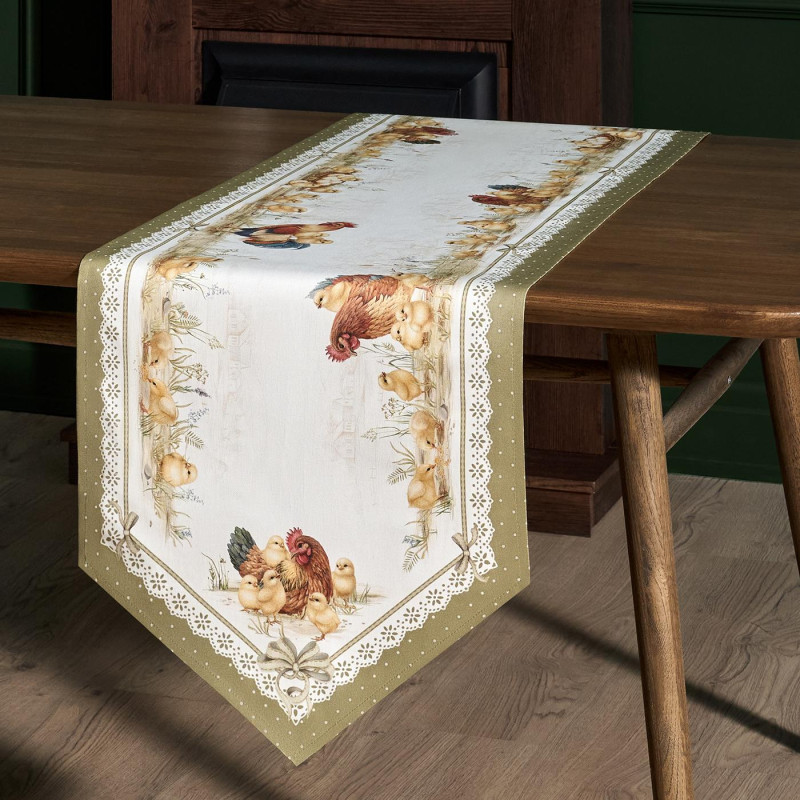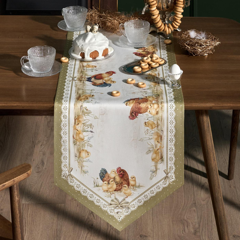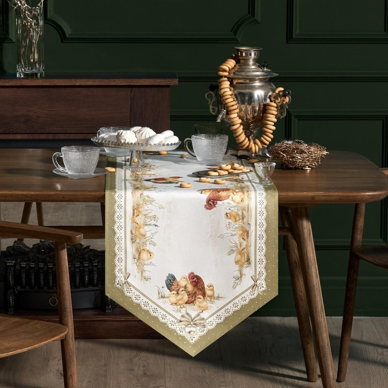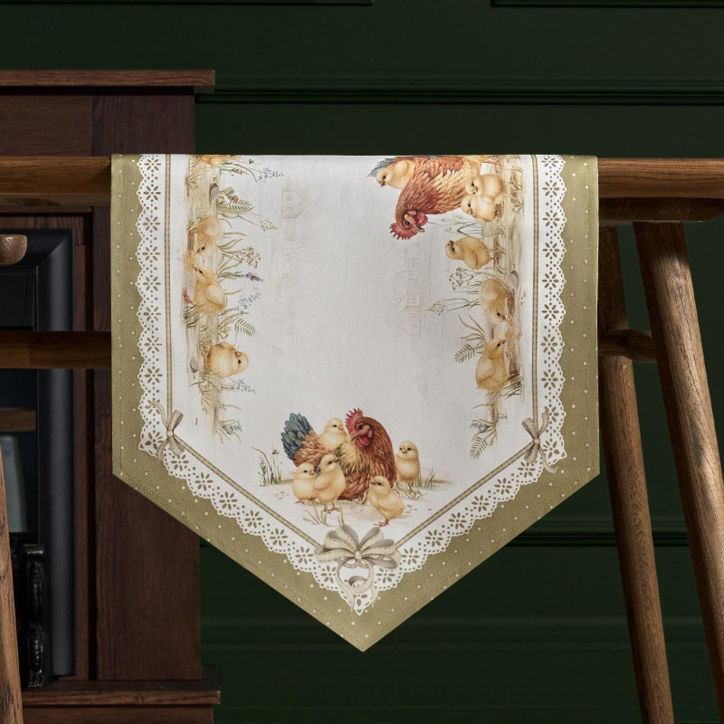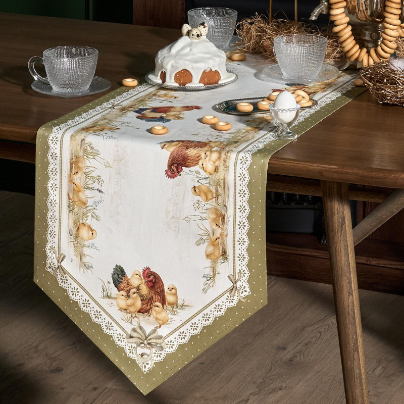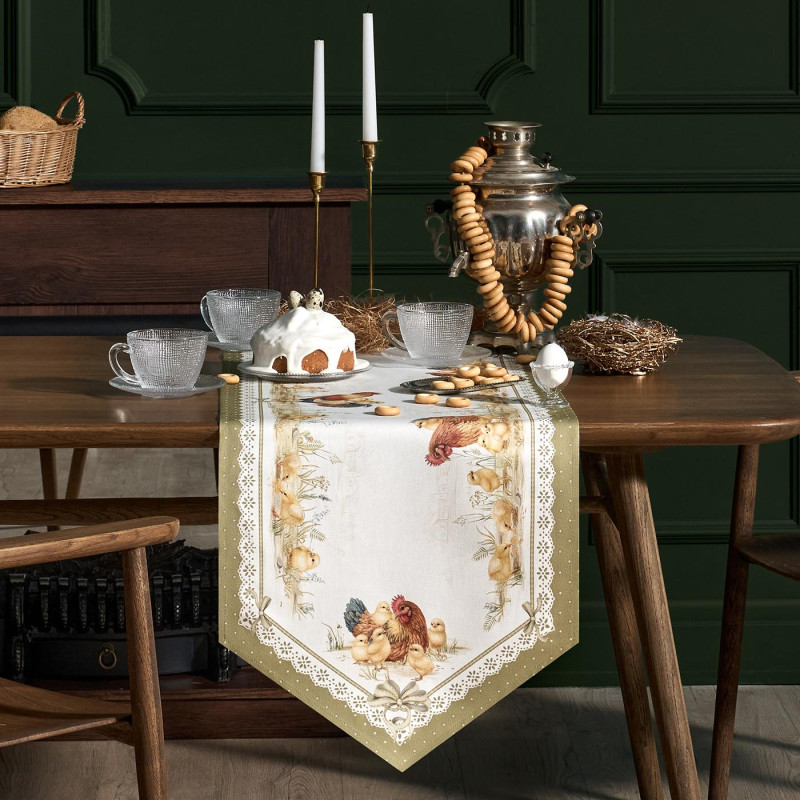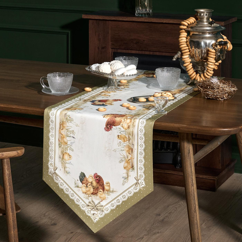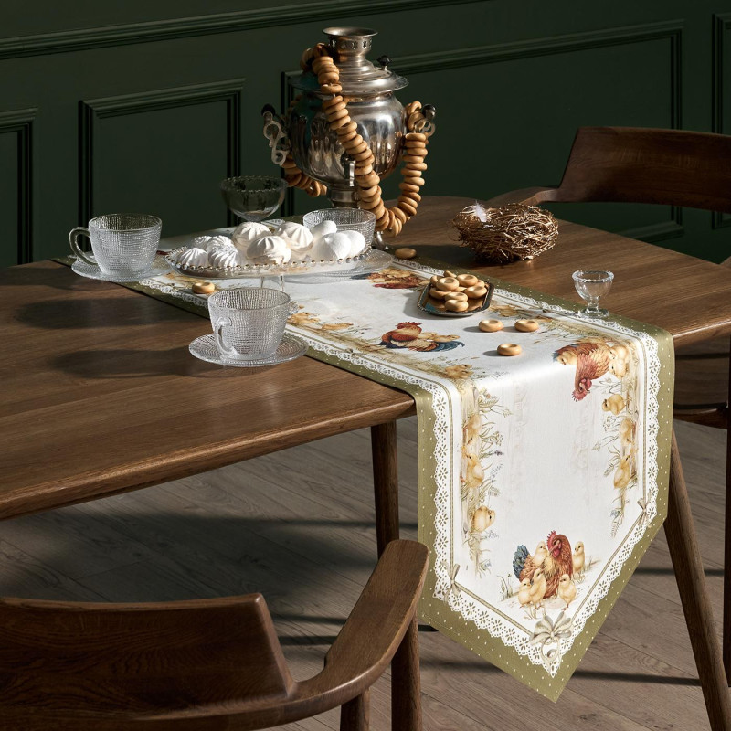 Дорожка на стол тканевая из пасхальной коллекции Золотая курочка от ТМ Lefard наполняет пространство дома атмосферой весеннего уюта и праздника, создавая тёплое и гармоничное настроение в сервировке стола.