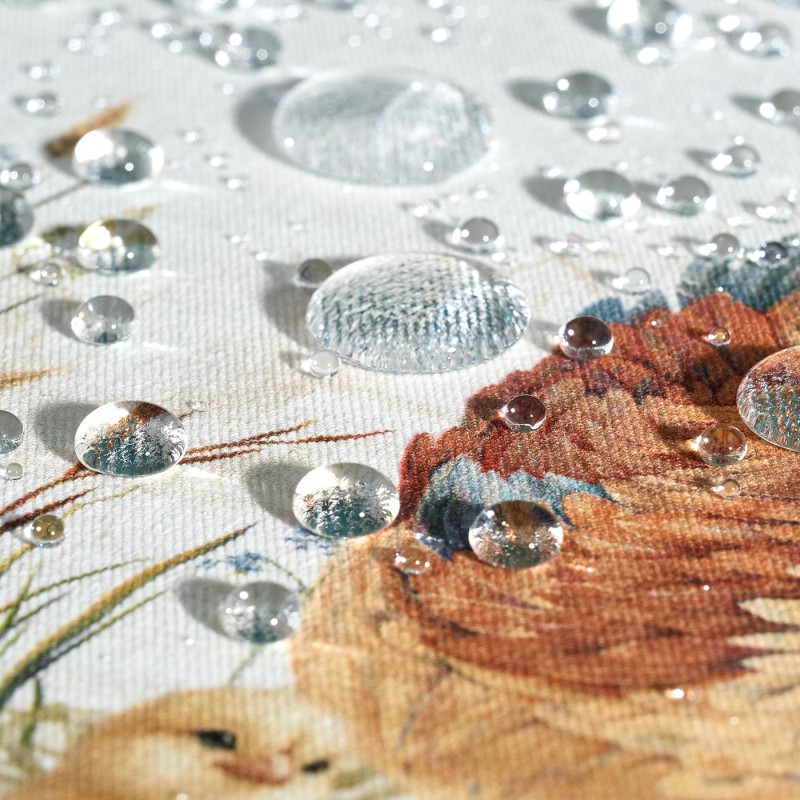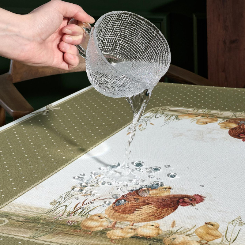 Изделие выполнено из 100% хлопка плотностью 190 г/м² с водоотталкивающей пропиткой, которая эффективно защищает поверхность стола от влаги и случайных загрязнений. Капли жидкости остаются на поверхности и легко удаляются салфеткой, благодаря чему дорожка сохраняет аккуратный внешний вид и подходит как для праздничной сервировки, так и для ежедневного использования.