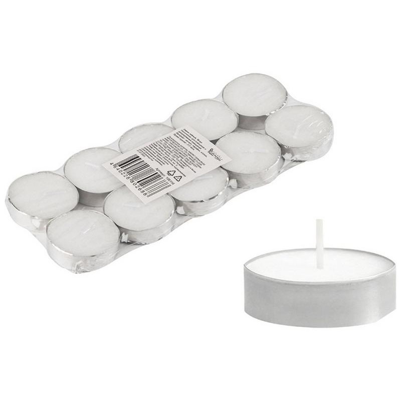 10шт, 3.75х3.75х1.14см, металл/парафин/хлопок, белый