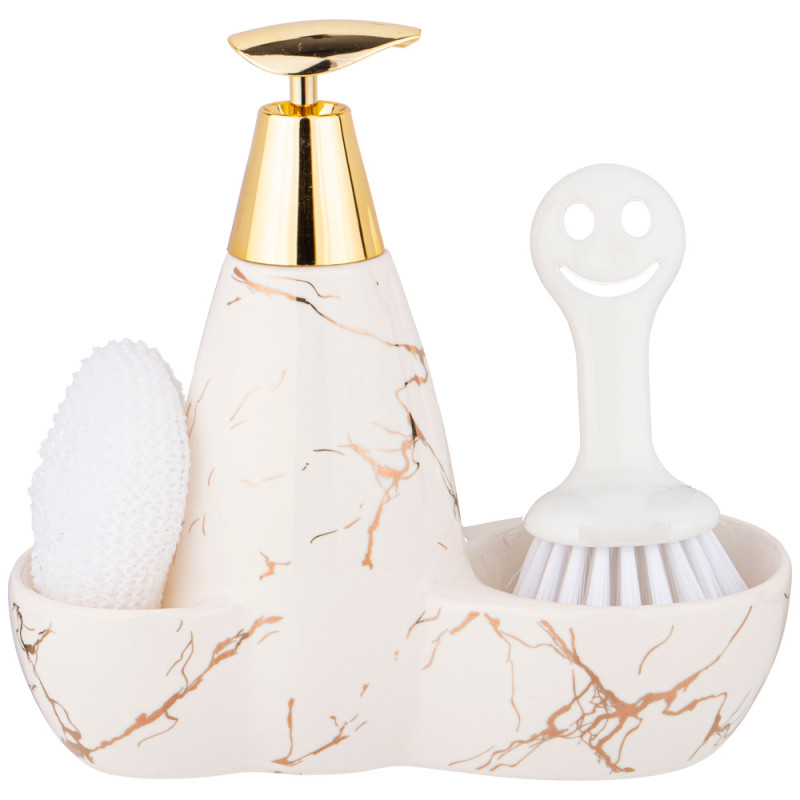 Дозатор для моющего средства "FANTASY" 500 мл + губка и щетка 20*9*18 см (кор=12шт.) LEFARD 755-223