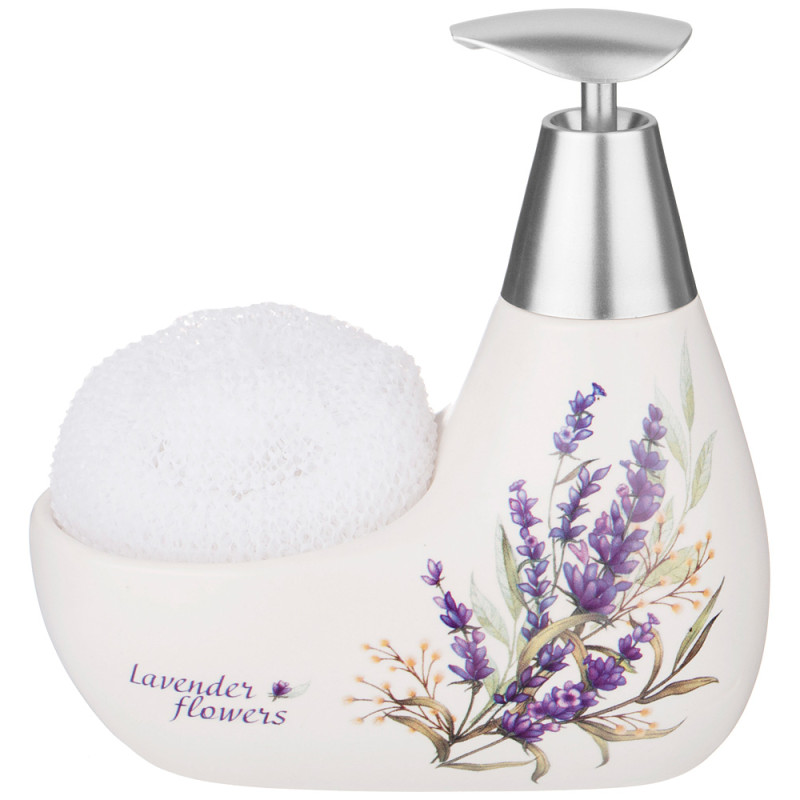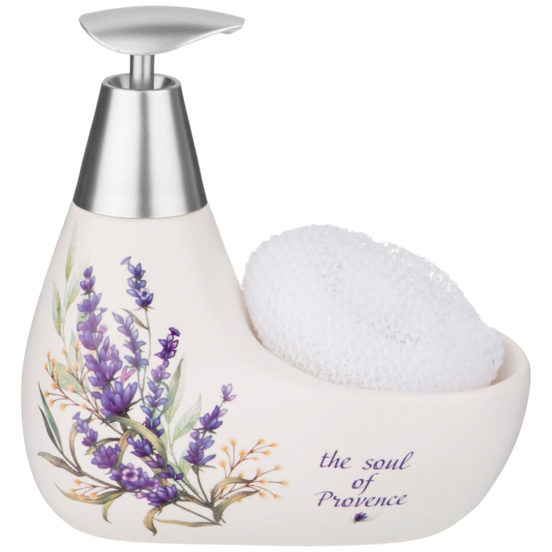 Дозатор для моющего средства "ДУША ПРОВАНСА" 350 мл. 11*9 см. высота=16 см. + губка (кор=24шт.) LEFARD 755-226