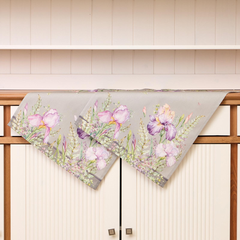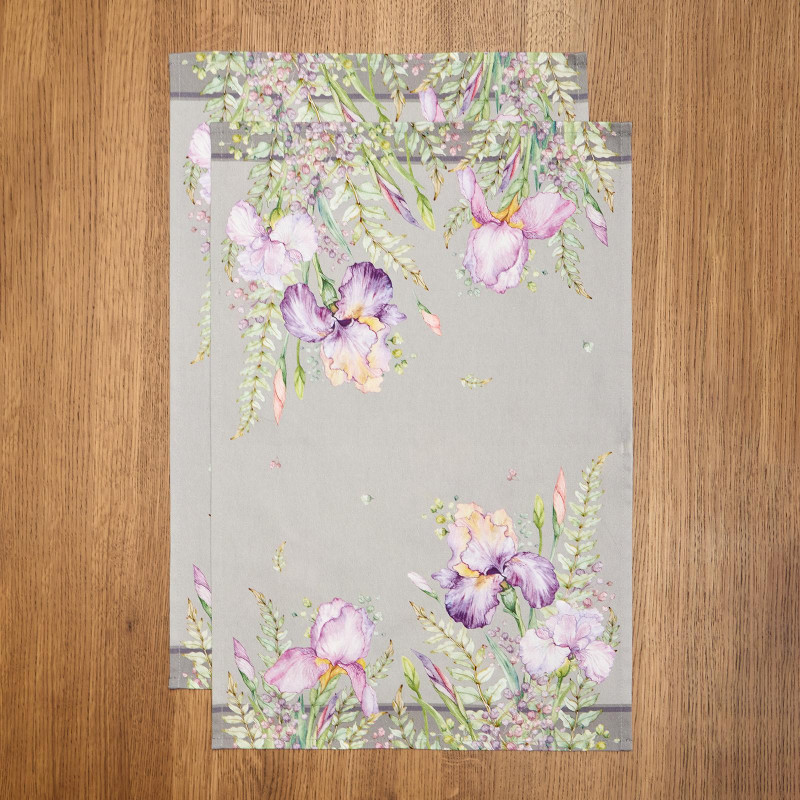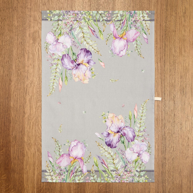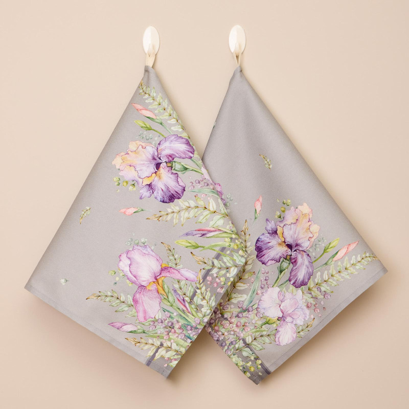 Каждое полотенце дополнено удобной петелькой для подвешивания. Цифровой принт с нежными ирисами добавляет интерьеру изысканности и не тускнеет со временем.