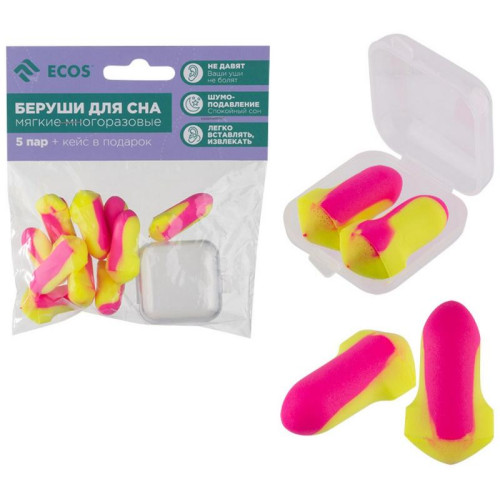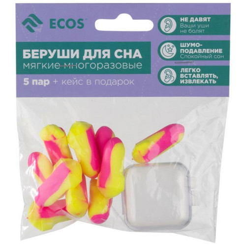 109352 Беруши Ecos для сна мягкие, 10шт + кейс, многоразовые