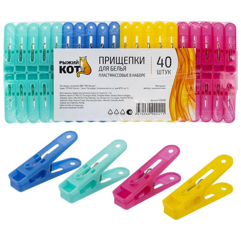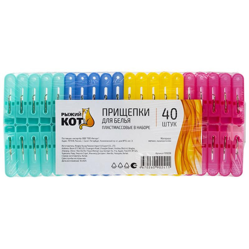 109228 Прищепки для белья пластмассовые в наборе 40шт Рыжий кот