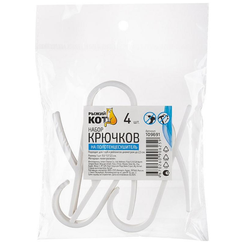 109691 Набор крючков на полотенцесушитель ' Рыжий кот' (4 шт) белый