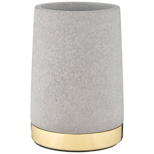Набор аксессуаров для ванной комнаты состоит из дозатора для жидкого мыла и подставки-стакана.