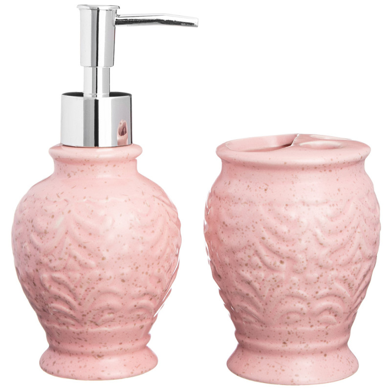 Набор для ванной комнаты 2 предмета: диспенсер для жидкого мыла+ стакан для зубной пасты и зубных щеток. Диспенсер прост и удобен в эксплуатации, мыло подаётся порционно, легким нажатием руки.