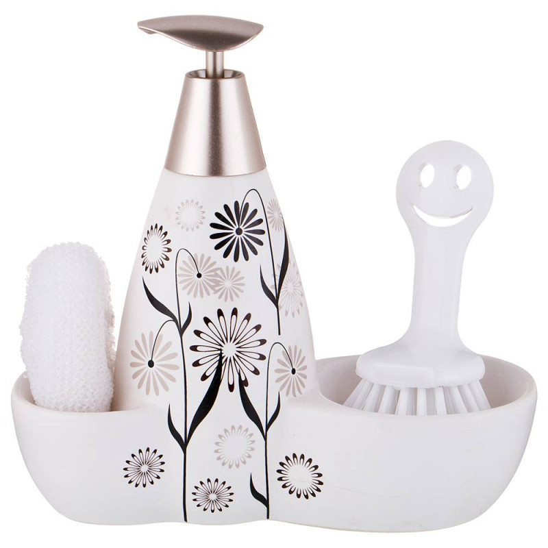 Дозатор для моющего средства 500 мл + губка и щетка 20*9*18 см (кор=12шт.) LEFARD 755-078