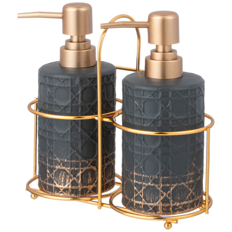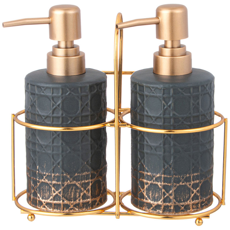 Секрет удачного оформления любого интерьера — яркие аксессуары! Дозатор для ванной не только внесёт изюминку в интерьер, но и придаст ему стильность, уют и ощущение завершенности. В комплект входят 2 дозатора для жидкого моющего средства и подставка.