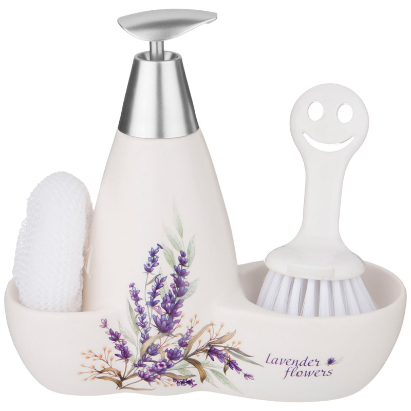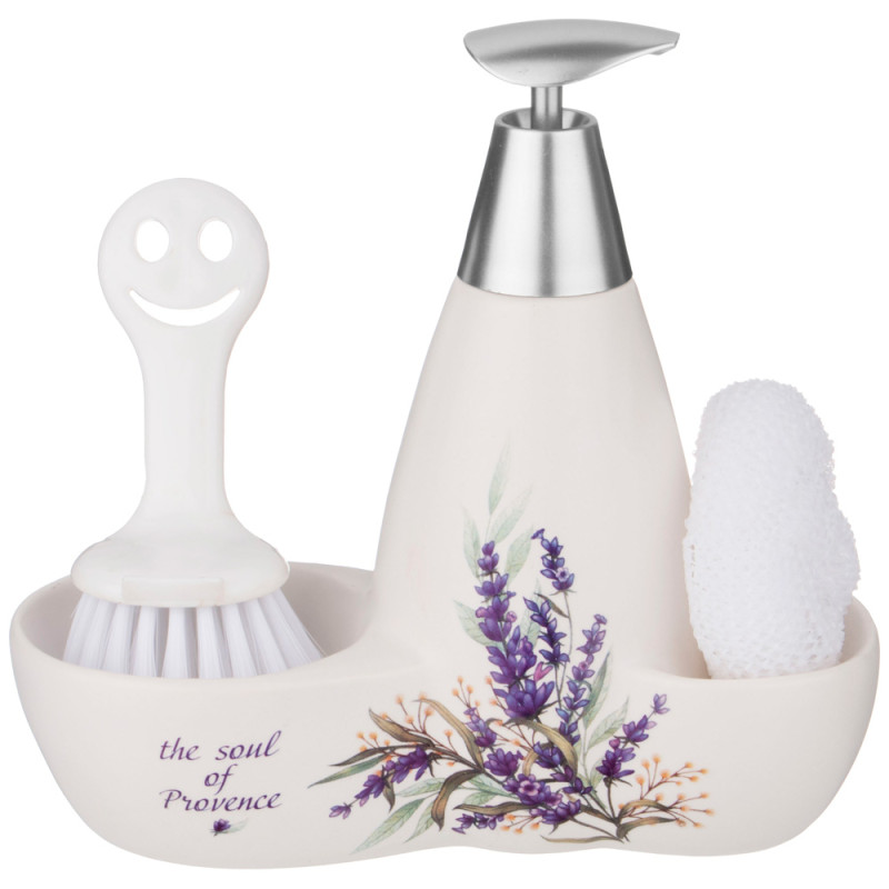 Дозатор для моющего средства "ДУША ПРОВАНСА" 500 мл + губка и щетка 20*9*18 см (кор=12шт.) LEFARD 755-221
