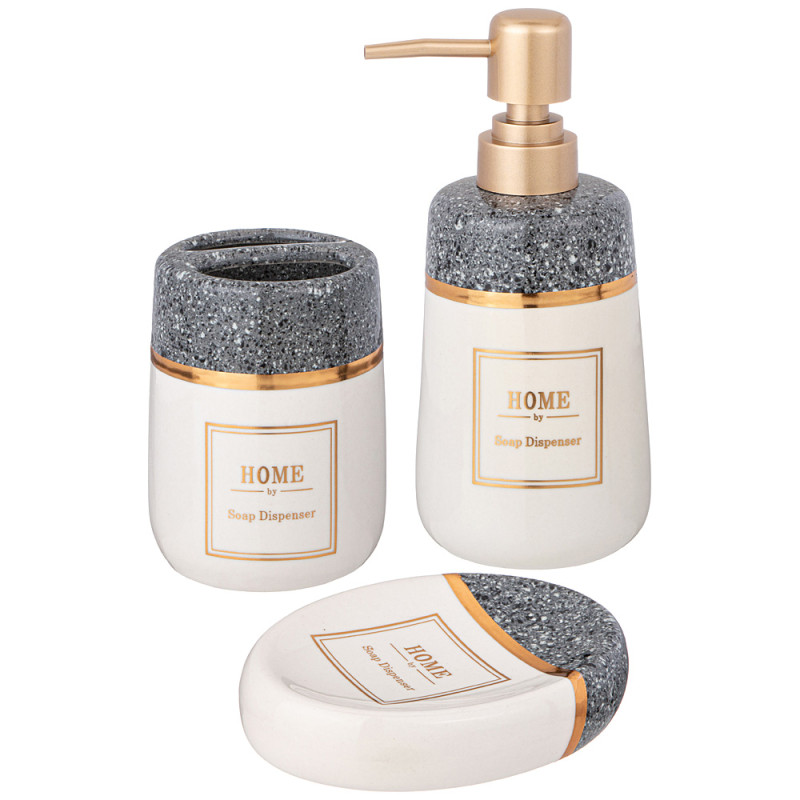 Секрет удачного оформления любого интерьера — яркие аксессуары! Набор предметов для ванной не только внесёт изюминку в интерьер, но и придаст ему стильность, уют и ощущение завершенности. А так же значительно облегчит хранение некоторых принадлежностей. В комплект входят: дозатор для жидкого мыла, стакан для зубных щеток и мыльница.
