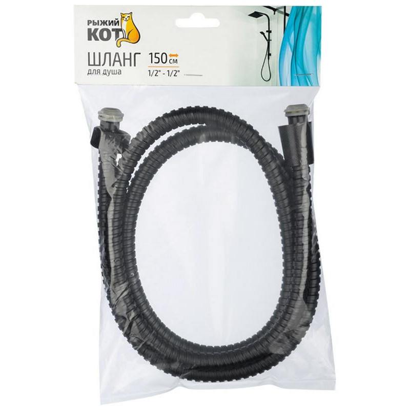 109085 Шланг для душа, 150см, 1/2-1/2 (черный) Рыжий кот