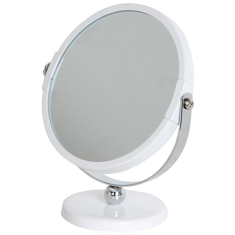 диаметр 12.5см, хромированный металл/стекло, с одной стороны-обычное зеркало, с другой- с 5-кратным увеличением