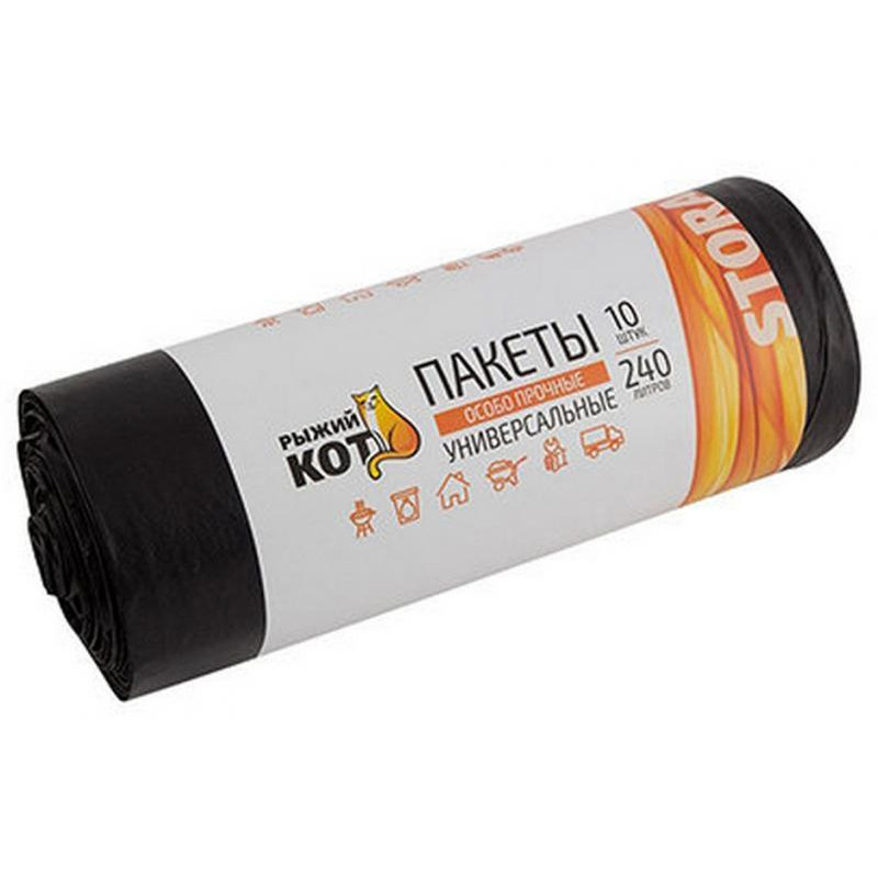 006979 Пакеты универсальные особо прочные' Рыжий кот' , 240л (10шт/рул) черные