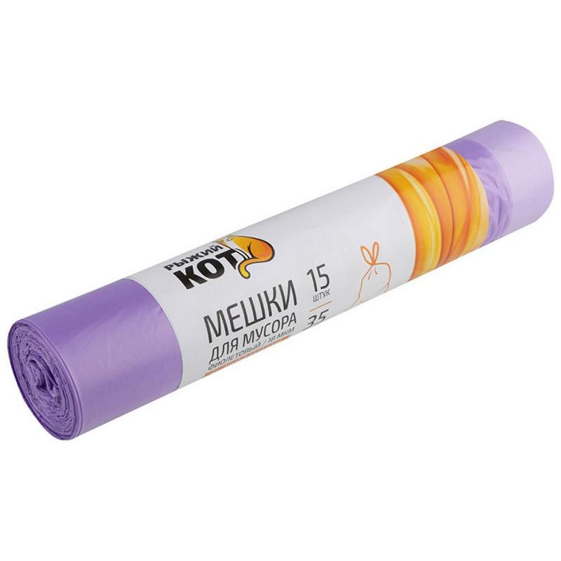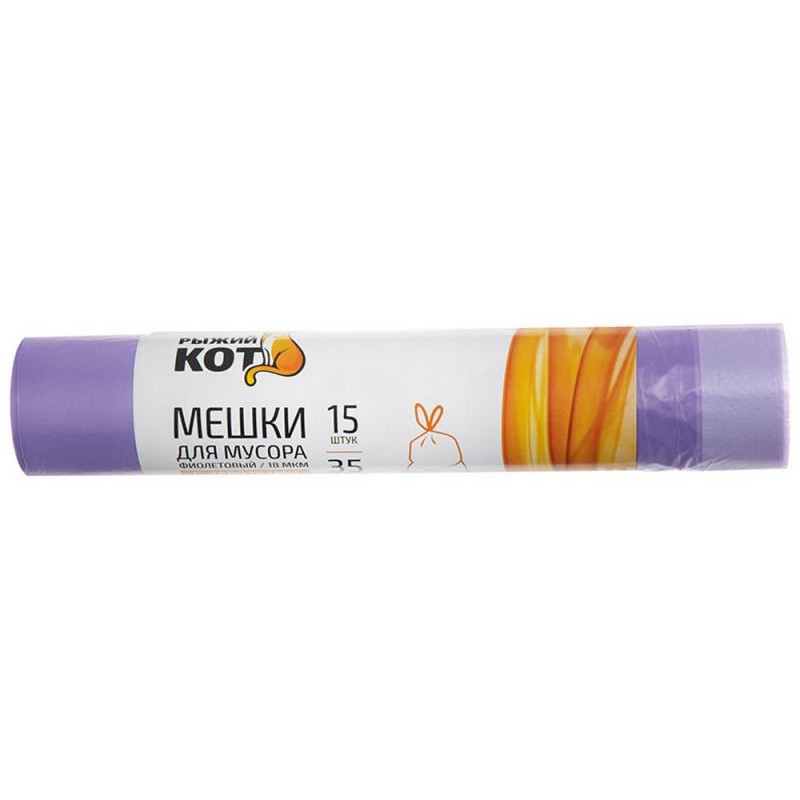 107146 Мешки для мусора с завязками 'Рыжий кот', 35л (15шт/рул) фиолетовые