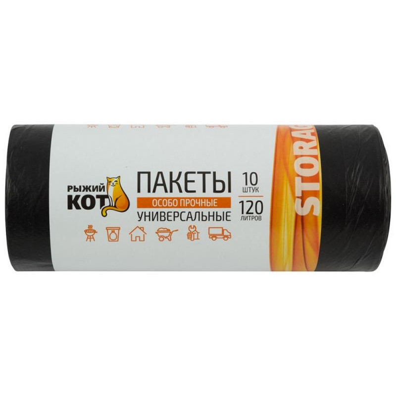 310410 Пакеты универсальные 120л (10шт./рул.) особо прочные, ПВД, черные, 40мкм