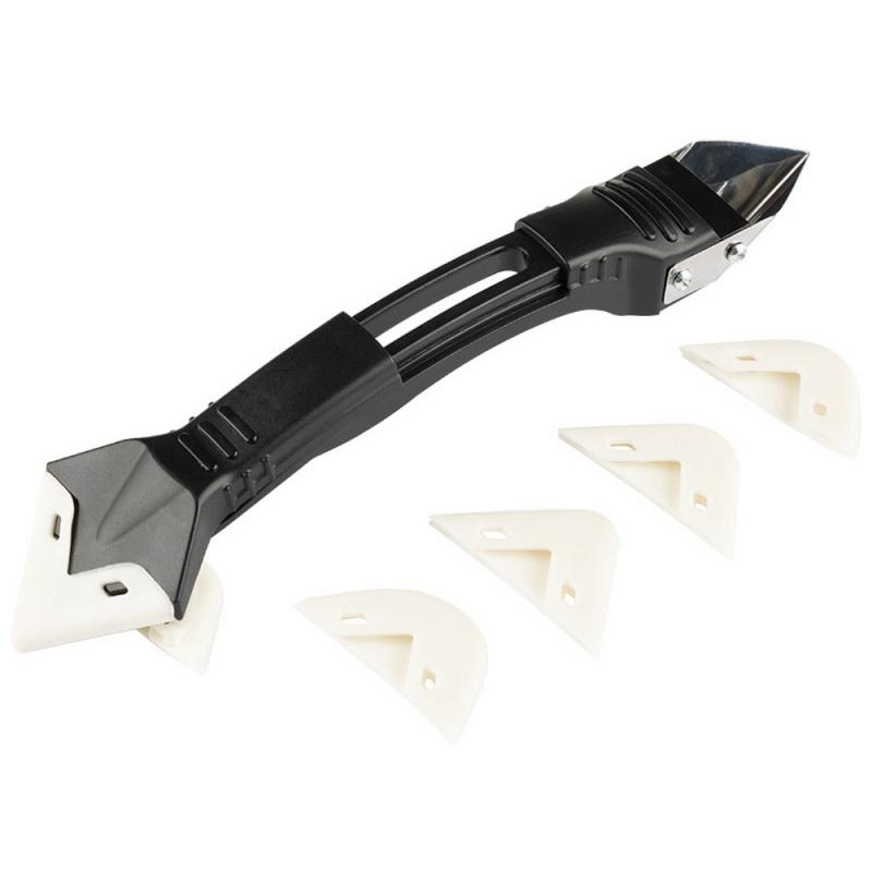 5в1, для удаления и выравнивания швов герметика, назначение: скребок строительный, нож строительный, скребок для удаления герметика, для выравнивания швов, скребок угловой , в комплекте: ручка + 5 различных радиусов: 3R, 6R, 10R, 13R, 17R