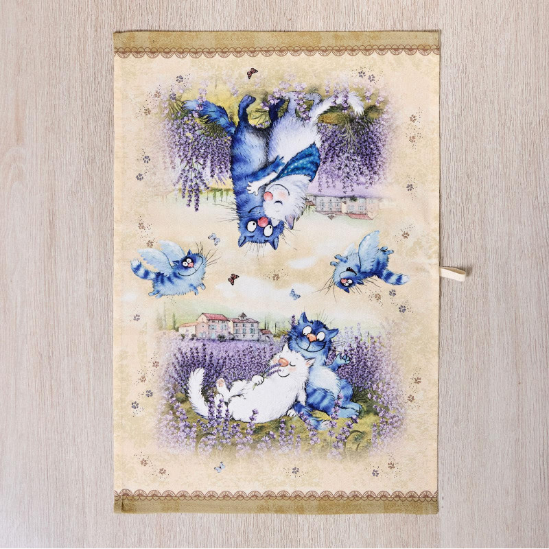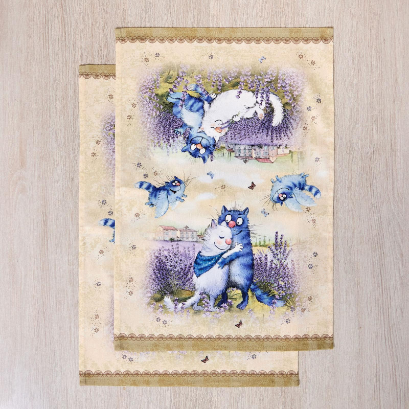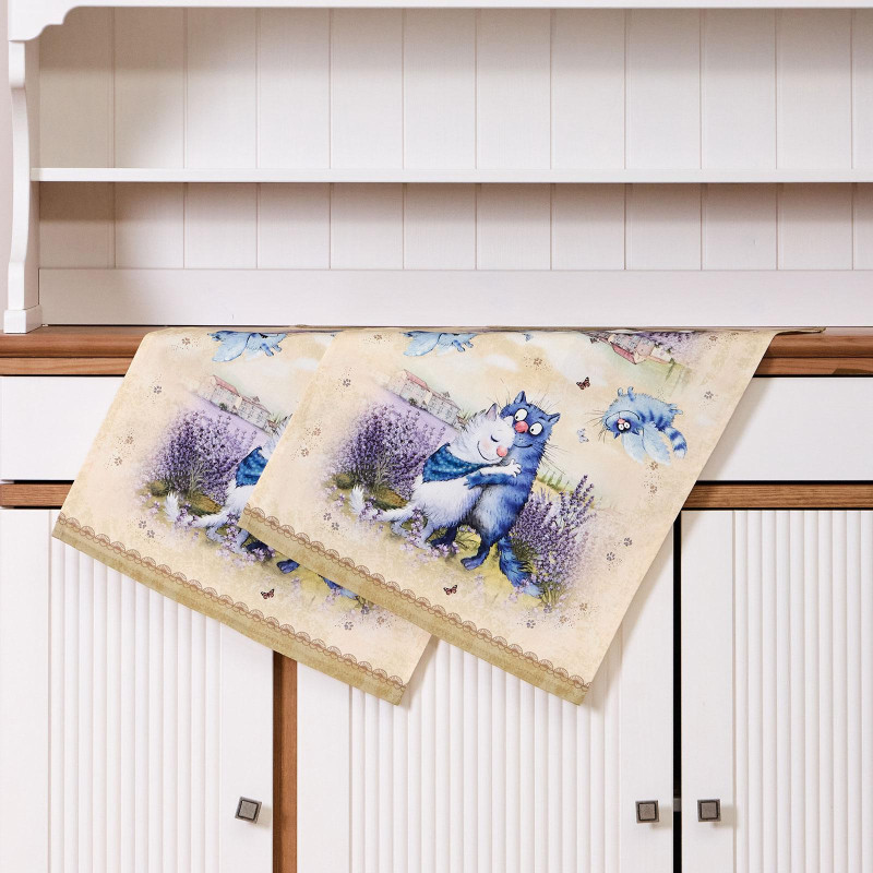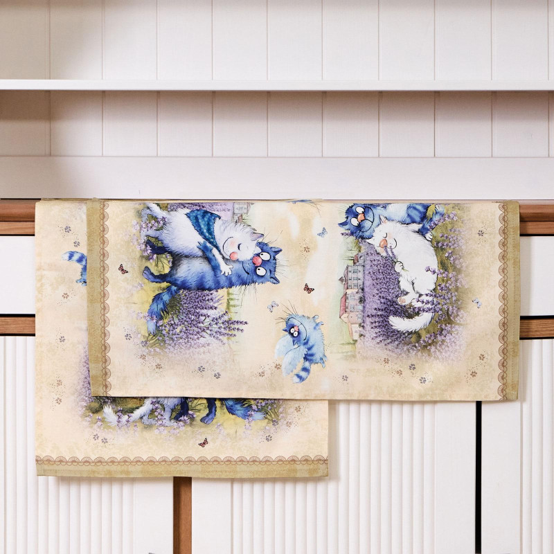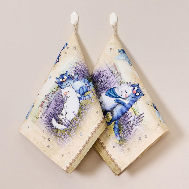 Набор полотенец из 2х шт " СИНИЕ КОТЫ. ЛАВАНДА" ,40х60см, 100% хлопок,твил, беж LEFARD 850-718-62
