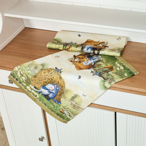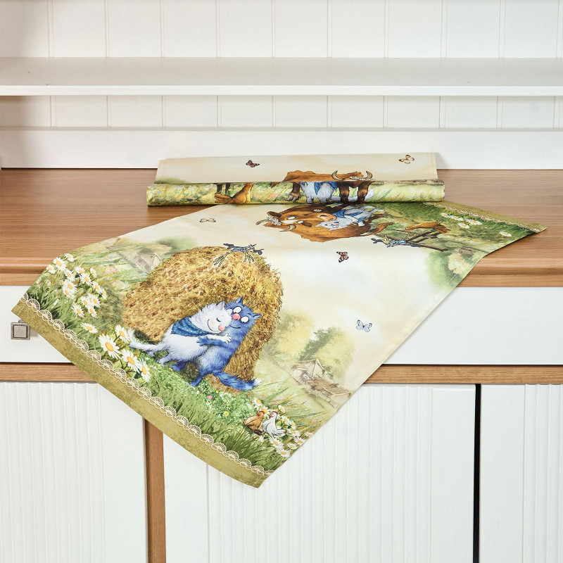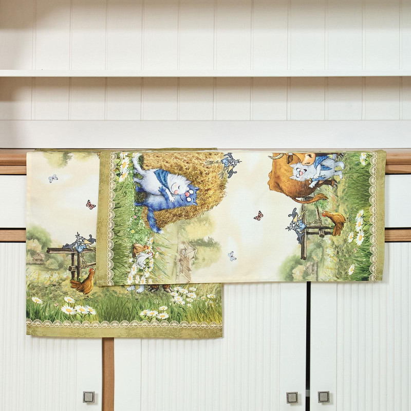 Особым направлением бренда «SANTALINO» является изготовление столового белья (скатерти, салфетки, дорожки (раннер), плейсметы, полотенца, фартуки) по эксклюзивным дизайнам наших художников, воплощённых в цифровой печати, на современном оборудовании. Для пошива изделий используются только натуральные материалы 100% хлопок, плотность ткани составляет 190 грм2, она имеет приятную структуру в мелкий рубчик и называется твил, отличается хорошей капиллярностью (впитываемость влаги), драпируемостью, износостойкостью, ткань проходит процесс каландрирования, что делает её более плотной и придаёт лёгкий атласный блеск, предотвращает образование так называемых «катышек» т.е. уменьшается пилингуемость ткани. Цифровая печать позволяет перенести на изделия не только всё богатство красок и оттенков, но и придать особую прочность крашению, ткань не теряет своей яркости даже после 100 стирок. Изделия легки и неприхотливы в уходе, стирать нужно при температуре 40С, гладить при температуре от 110-170С с отпариванием, но нельзя подвергать хлорному отбеливанию. Для удобства эксплуатации на ряд изделий, такие как фартуки, скатерти, дорожки может наноситься водогрязеотталкивающая пропитка, которая не влияет на внешний вид изделия, но позволяет избежать сильного загрязнения при использовании.